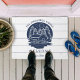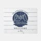 Navy Blue & White Wood 素朴 Lake House Doormat魅力的で、レイクサイドのリトリートにお客さま航海のを歓迎!青い海の中に美しい湖の家のロゴが入ったエレガントり、松の木々、カヌーのパドル、穏やかな水の池、いかり、白い素朴な木の背景に居心地の良い家のイラストレーションを完備しており、あなたの家にぴったりのトーンを設定する。同じ青いタイポグラフィで家族の名前を使用してロゴ上の曲線のレイアウトをパーソナライズエレガントし、ロゴの下に、設立された年、湖の名前、家の住所、暖かい歓迎サインなどの独自の文字を追加する。この形式は、近くの家族の懇親会や湖の近くの新しい家のための完璧な記念ギフトを提供し、沿岸の魅力で訪問者を迎えるスタイルと機能の両方を提供する。