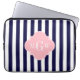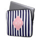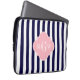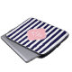 ネイビーホワイトストライプクローバーピンク3モノグラム ラップトップスリーブ