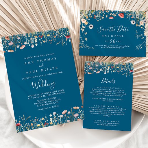 この海軍のボホ結婚ワイルドフラワーの全てが一挙に招待され、素朴な家に最適結婚である。このデザインは、ピンク、紫、赤面、黄、ほこりっぽい青、赤、燃え立つ牧草地の野生の花々をシームレスで楽しい花の形で組み立て、自然美しいを引き起こす。別の救エンクロージャカードではなく、招待に追加の詳細を含めることによる紙。