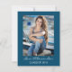 ネイビーモダンブルーの背景に垂直フォーマットの写真を持つ女の子のための卒業の招待。自分の文字でパーソナライズ連絡カスタマイズまたは一致する製品と一緒に私たち。