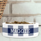 白レトロパーソナライズされたタイプライターフォントで愛犬の名前とネイビーブルーとホワイトのギンガムチェック柄を特徴とする犬用ボウル。あなたの農家の装飾にフィットする完璧なペットのアクセサリー。