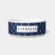 クラシックネイビーブルーの小さな白いパーソナライズされたいかりのパターンを備えた私たちの犬のボウルであなたの海面のポー航海のプ、あなたのペットの名前を前面に飾る。