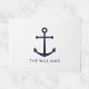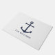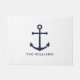 ネイビモダンー航海のブルーのいかりと名を付けパーソナライズされたたミニマルなドアマット白い背景のネイビモダンーブルーのサンセリフフォントスタイル。ビーチハウスの装飾、引っ越し祝いパーティーギフトなどとして完璧。