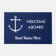 この形式で航海のスタイルのゲストをエレガント歓迎。マット写真はいかりをクラシックネイビーの青い背景の上に「Welcome Aboard」という言葉で囲む。以下の文字は、あなたの船の名カスタマイズ前、家の名前または選択の他の文字と一緒にすることができる。ボート愛好家、セーリング愛好家、夏の住宅所有者、そして誰もが海のシックで彼らの入り口をリフレッシュしたいと思う理想的な贈り物。