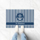 ネイビー航海のブルーいかり上のロープ付きストライプ ドアマット