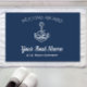 Navy Blue Welcome Aboard Boat Boat Nameいかり。ネイビエレガントーブルーとホワイトは、海岸、ボート、セーリング愛好家に最適。ボートの名前、都市、州でパーソナライズ。理想的な沿岸ギフト!