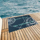 ネイビー航海のブルーウェルカムコンパスバラボートマットに乗り、ネイビーモダンブルーの背景にコンパスのバラとナビゲーション線が白いデザインを搭載。ボートの名前でボートのマットをパーソナライズ。このスタイリッシュ沿岸デザインは船素晴らし主への贈り物でもある。