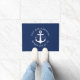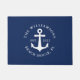 家族の名前、年と州のテンプレートと白いいかりを持つネイビーブルーと白のドアマットは、ビーチハウスの屋外の装飾のための完璧なアイディアである。船主の素晴らしアイディアでもある。