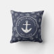 いかりと名字航海のと年を備えたネイビーブルーとホワイトの枕で飾シーシェルの模様。テンプレート文字は、このいかり枕簡単をパーソナライズしてビーチハウスパティオとポーチのための完璧なアクセントデコを作成する。