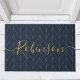 ネイビー金ゴールドアールデコパーソナライズされたリーフファミリ名 ドアマット