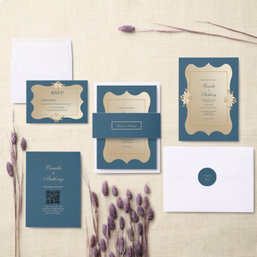 Navy Gold Floral Boho Weddingデザイン: Dia Sha