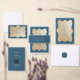 ネイビー金ゴールドフローラボーホウェディングRSVPカード