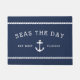 ネイビー&ホワイトいかりパーソナライズされたボート名 ドアマット
