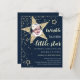 カスタマイズ可能な手頃第1紙の誕生日の招待。小さな誕生日の星の写真を取り囲む金ゴールドグリッタースターを搭載。金ゴールドの輝きと星のネイビーの夜空の背景に。