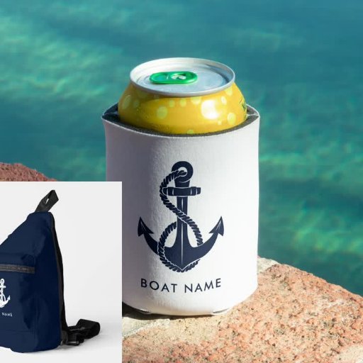 ネイビ航海のーブルーいかりカスタムボート名 缶クーラー (缶正面)