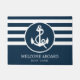 ネイビ航海のーブルーカスタムボートネームWelcome Aboard ドアマット