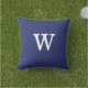 この枕の前はネイビーブルーで、モノグラムイニシャルが白く、好みに合わせて用意されています。 枕の背には水軍色と白航海の色のがあストライプる。