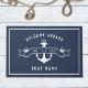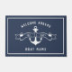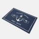 船カスタム名の付いた航海のテーマいかりのロゴデザインを特徴とするデザインのパーソナライズされたウェルカムマット。
