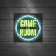 ネオン緑と青の効果記号「GAME ROOM」と名前をカスタムする付きで、男の子の10代のゲーム/アーケードルームに最適。