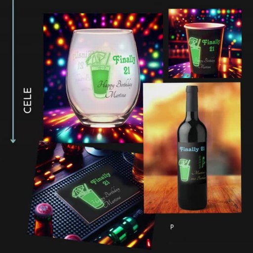 21歳の誕生日のパーティーで飲むネオン緑の傘は、最後に21と名前の誕生日の文字を言う緑の文字と飲む。