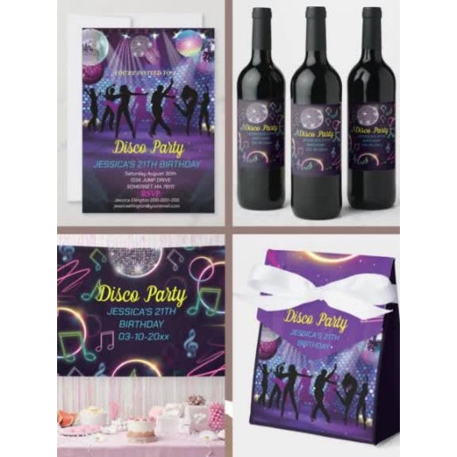 Neon Glow Disco Dance Birthday Party, Disco Birthday Party 70's Disco Ballパーティの招待状.ピンクと紫の21歳の誕生日パーティの招待状は誕生日パーティーにモダン最適だ。一致カスタマイズ製品は要求により設計者が作成できる。