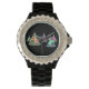 日の出でカラフル波の海船のグラフィックイラストレーション。このお気に入りのデザインの時計のスタイルを選択。帆走素晴らし愛好家のためのギフトアイディア。