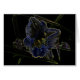 ワスレグサ種はHemerocallisです。 青、黄色および緑の白熱[赤熱]光を放つな端のこのデジタルデザインは黒背景に対してワスレグサの花のネオン白熱輪郭を作成します。 葉の刃は緑で輪郭を描かれます。 花びらのtectureは青で強調されます。 花のシルエットは明るい黄色がかった白でたどられるが、ユリのpistelそして雄蕊は黄色とアクセントを置かれます。