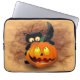ネコおもしろいハロウィーンキャラクターカボチャをかむ ラップトップスリーブ