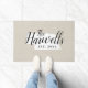 家モダンの家パーソナライズされたの州マップ内にあなたの家族の名前とdoormat。フェイク burlap canvas texture backgroundクリックカスタマイズ自分の文字と画像を追加し、優れたデザインユニークの1つを作成する!
