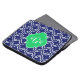 Navy Blue #5c and White MoroccanクローバーTrellis Pattern #6、Emerald Green Ribbon 3イニシャルMonogram カスタマイズ 3イニシャル、名前、またはその他の文字を使用します。フォントの変更、フォントのサイズとデザインの色の調整、のデジタルですが基になる製品に転送されます。 デザイン自体には、実際のリボン、ラベル、金属、エンボスなどが含まれていません。他の色やデザインでこのパターンが必要ですか? メールを送って知らせて!