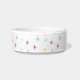 この素敵なミッドセンチュリー モダンのペットボウルは、赤、青、黄色、緑のスターバーストと黒のドットがかわいいアトミックスターバーストとドットが特徴です。ペットの名前を加えて、食事の時間を楽しくしましょう!