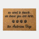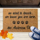 この形式でゲストおもしろいを歓迎!「ノックする必要はない、我々はあなたが来ているのを知っている。」 犬。ウェルカムフォーマット – Dog Paw印刷フロアマット。自然素朴のフェイクコーアとポープリント付きの黒いデザイン。COPYRIGHT © 2020 Judy Burrows, Black Dog Art - All Rights Reserved.