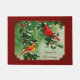 雄と雌の北の赤い深紅色のペアがヒイラギの木に止まり、第三の(鳥)ショウジョウコウカンチョウが摘まれたばかりのヒイラギのと果実が詰まった織り上げ葉た木の籠に座る。クリスタ・フォレストによるオリジナル油彩画から制作。