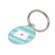 この可愛いノースダコタのペットIDラベルと家の州のプライドを見せなさい。デザインは州の白いシルエットの地図を持ち、中にピンクのハートを持つノースダコタのターコイズの背景にトーンの上にストライプある。水色の背景に白い連絡レタリングでペットの名前と情報を後ろに追加。