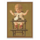 ヴィンテージ/ビクトリアンベビーグリーティングカード高い椅子に可愛らしい小さな幼児遊がドミノと一緒に!