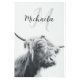 ハイランド牛ポートレートイニシャルモノグラム白黒 メタルプリント