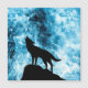 抽象芸術の幾何学的な冬の雪の青と黒いウルフシルエットと白い煙。
