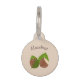 犬や猫のためのハゼナッツと緑の葉がライトブラウンの背景にデザインされたペットタグ。名前と電話番号を入れてオリジナルにカスタマイズできます。