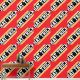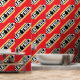 このスポーティなタイルのホッケーデザインは、明るい赤の背景に対して幅広い対角線の黒、白、および黄金色のレース文字を強調した中にアスレチックストライプHAT TRICKを備えている。動的なバナー効果を持つ走文字のデザインエッジの最初と最後の文字。そのデザインは繰り返し並べられている。このデザインの色と文字は可能であパーソナライズされたる。