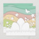 かわいいペーパーカットデザイン、隠されたイースターの卵、花と蝶、幸せな春自然風景、イースター休日グリーティングカード