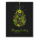 黒い背景の上に緑のピンクと紫のレトロフローラ卵。ハッピーイースターカスタマイズ文字