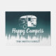 ハッピーキャンパーズティール(緑がかった色)グラデーションキャンピングトレーラーファミリーネームドアマット