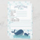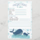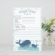 ハッピーホエールベビーシャワー予測とアドバイスシート。おもしろい活動あなたの赤ちゃんシャワーでゲストを巻き込む,親が存在するための知恵の言葉を持つ。このデザインは、海の泡のフレームで海を泳ぐママとベビーのクジラを特徴としている。編集可能なゲームのお洒落指示とタイポグラフィでレタリングされ、ブルー、アクア、海グリーンの色合いのカラーパレット。一致するもし製品が必要な場合は、私のHappy Whaleコレクションを参照するか、または必要なデザインテンプレートを追加するようにメッセージを表示する。
