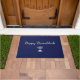 ハッピーハヌッカブルーのドormat、手描きとスクリプトデザイン。カスタマイズ可能なタイポグラフィレタリングで、独自の文字を追加できる。おもしろいの休日の屋外ホームデコールアイテムと季節のtouch。