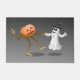 カボチャと幽霊がコスチュームパーティーを始め、踊りを始めた可愛いハロウィンドーマット。