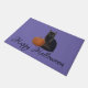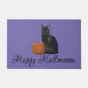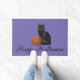 ハッピーハローウィン猫とカボチャの上の紫色のドアマット ドアマット