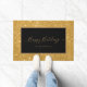 ハッピーホリデーズブラック金ゴールドグリッターファミリー名 ドアマット