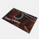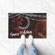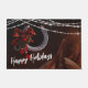 このハッピーホリデーズクリスマスドormatは、暖かい茶色の馬耳の美しいセットを特徴としている。休日のライトのストリフェイクングと赤い弓とオーナメントを持つ馬蹄装飾がかわいらしある。