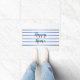 ドアマットは白い背景にストライプ青いを備えている。カスタマイズ文字