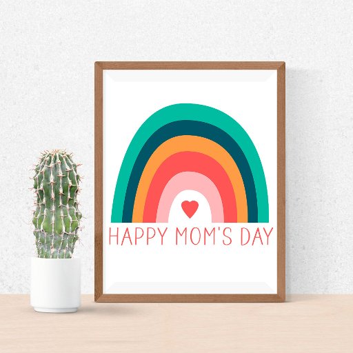 下モダンにカラフルハートとハッピーママの日と虹。母の素晴らし日の贈り物。